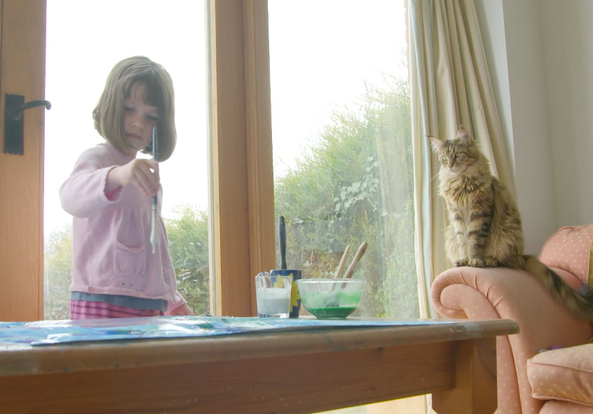 En esta ocasión es una preciosa niña llamada Iris Grace quien disfruta y mejora en su capacidad de comunicación con el mundo exterior por medio de su gatita: una Bosque de Noruega que mira embelesada a la pequeña y que la ayuda a superar sus aversiones.