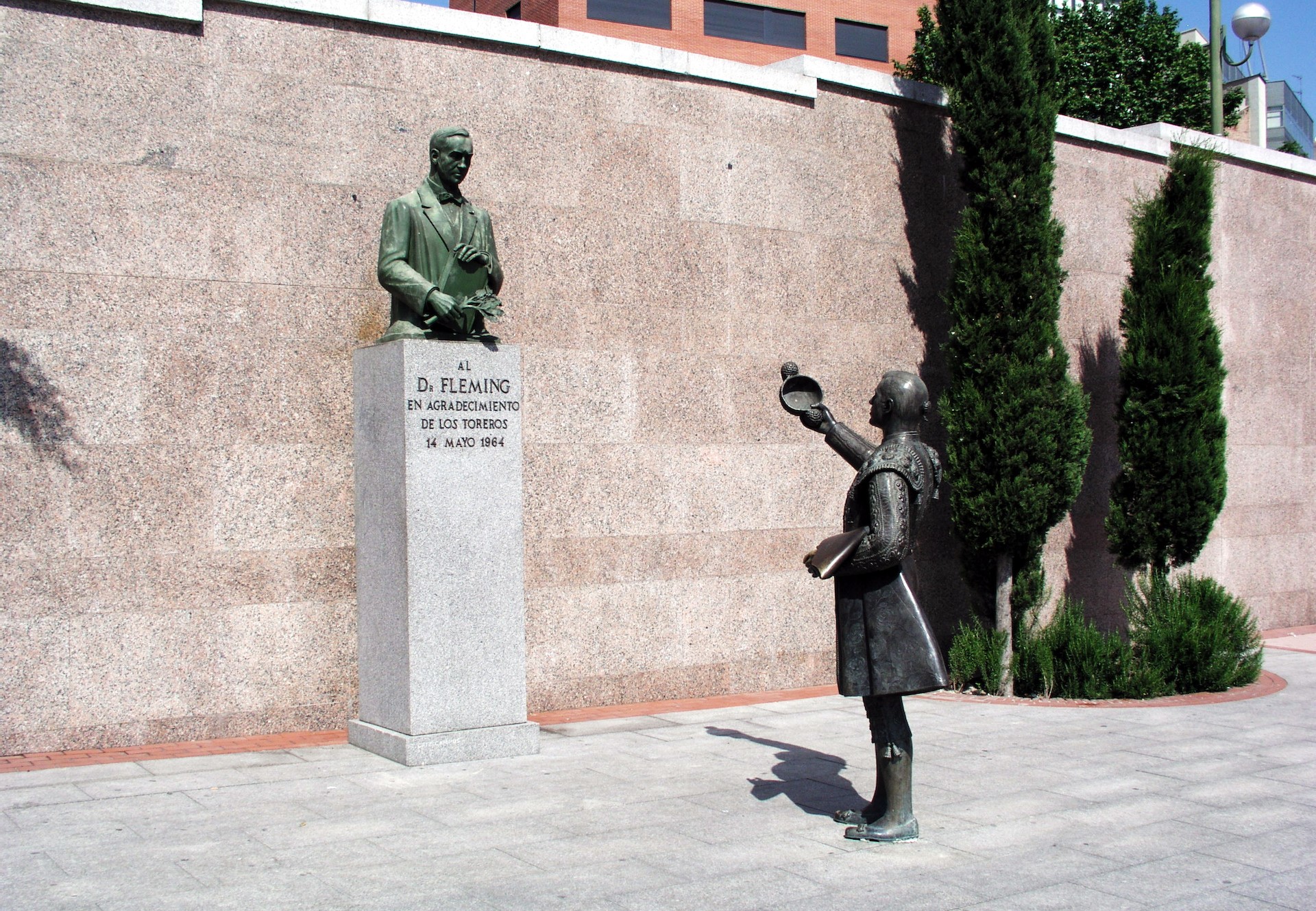El monumento a Fleming que se levanta a la Plaza es figurativo. Un busto ligeramente elevado del científico recibe el brindis de un torero desmonterado al efecto, y el subconsciente de algún sujeto ha aprovechado en ocasiones tal gesto para arrojar pintura sobre la cabeza del torero. Clara muestra de la cobardía de quien seguramente pretende ser ocurrente, gracioso o reivindicativo al obrar de tal modo.