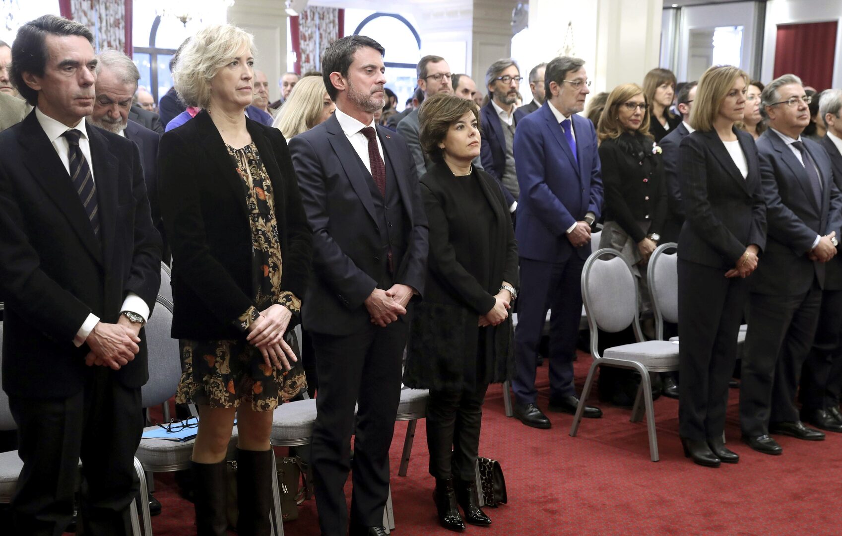 La crónica de Pablo Montesinos mostraba a la perfección un partido roto en dos: a un lado, los pasados que no aceptan a los presentes (Mayor, San Gil, Consuelo Ordóñez); al otro, los presentes que detestan a los pasados pero los necesitan (Alonso, Semper, Maroto). Y detrás, el partido nuevo, Ciudadanos, que cuenta tantos afectos como desafectos cosecha Soraya, la figura más visible del desastre catalán y la ruina del PP. Ningún representante del Gobierno del PNV, dizque socio parlamentario de Rajoy pero aliado estructuralmente a ETA y que prepara el zarpazo vasconavarro en cuanto lo permita el catalán. Sólo una representante de un PSOE más del PNV que del PP, dentro de lo poco que es: casi tan poco como el PP vasco, que de la mano de los sorayos Alonso y Maroto es ya, sencillamente, nada. Y dentro del Gobierno, la misma ruptura: a un lado Cospedal y Zoido; al otro, Soraya y… Soraya. Ana Botella, entre las niñas ashishinas, sonreía como en casa, mientras su marido veía a Soraya padecer entre enemigos. Era difícil que en tan breve espacio hubiera tanta distancia, pero la había.