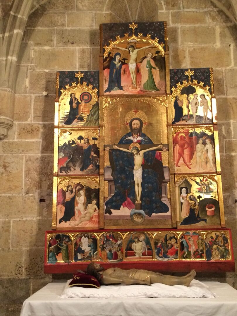 Hay que dedicar un día a callejear por las calles de RdM, disfrutando de los relojes solares en las fachadas de los edificios, los conventos y excolegiatas y, sobre todo, el aroma a madera que proviene de sus chimeneas, en el que se mezcla el pino y la carrasca (encina). Pero ahí es donde empezaba la infravaloración en la recomendación para visitar el pueblo porque RdM es un museo al aire libre de las esculturas de hierro forjado, diseminadas por sus plazas y calles, del artista José Gonzalvo, especialmente en sus homenajes al toro. Pero la gran sorpresa viene cuando se consigue visitar el convento de las Madres Agustinas. Allí, en una destartalada iglesia, y escondido en una capilla oscura y húmeda, nos deslumbrará un retablo gótico de Gonçal Peris con escenas del Antiguo y el Nuevo Testamento. De una belleza espectacular multiplicada por el hecho de estar situado en su lugar natural en vez de en un museo, todavía no nos habremos repuesto del entusiasmo cuando en la excolegiata, situada en el centro del pueblo (todavía más difícil de visitar, ya que solo se abre en fines de semana y festivos), nos veremos cara a cara frente a otra obra maestra del mencionado artista valenciano, en esta ocasión un retablo dedicado a la Virgen María. De dimensiones más grandes que el anterior, el brillo de los dorados y los colores pasteles del gótico, así como la finura de las composiciones y ese hálito de inocencia característico de esta época artística, le convertirán en un fan total del genio del Levante y le llevará a buscar el resto de su obra, fundamentalmente en el Museo de Valencia (su última obra que se pudo adquirir nos la robó el Museo del Louvre, quizás porque los parisinos están más preocupados por el arte que por la Fórmula 1 y la manipulación lingüística que los habituales gobiernos valencianos).