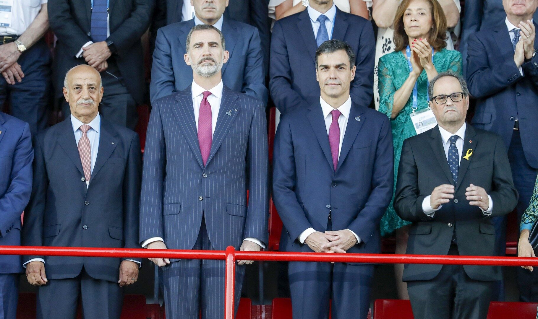 Y repiten que llueve, los vejados. Lo corrobora Lola García en un artículo acompañado por una foto que muestra a Pedro Sánchez, en postura beatífica, en el palco de los Juegos Mediterráneos de Tarragona, junto al hierático Torra que, condecorado con el lazo amarillo, acaba de participar en una chirigota con los neandertales de la ANC para confirmar la ruptura con la Corona y, por lo tanto, con España ("No hay plan Torra a la vista", LV, 24/6):