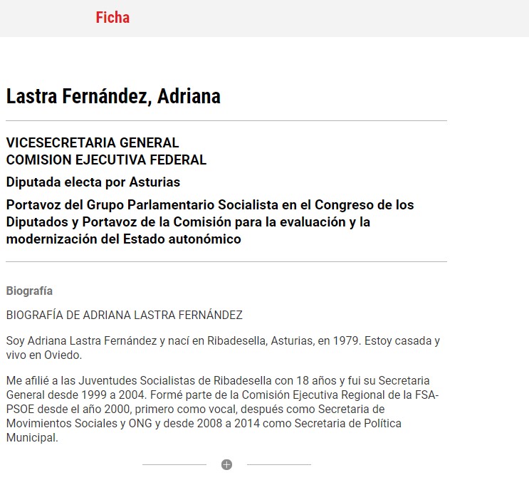 Adriana Lastra, portavoz socialista, nunca tendrá problemas de títulos, máster o doctorados falsos. Sencillamente, no tiene estudios, más allá del bachillerato. A los 18 años entró en las Juventudes Socialistas, y desde ahí ha ido enlazando cargos en el partido, hasta hoy.