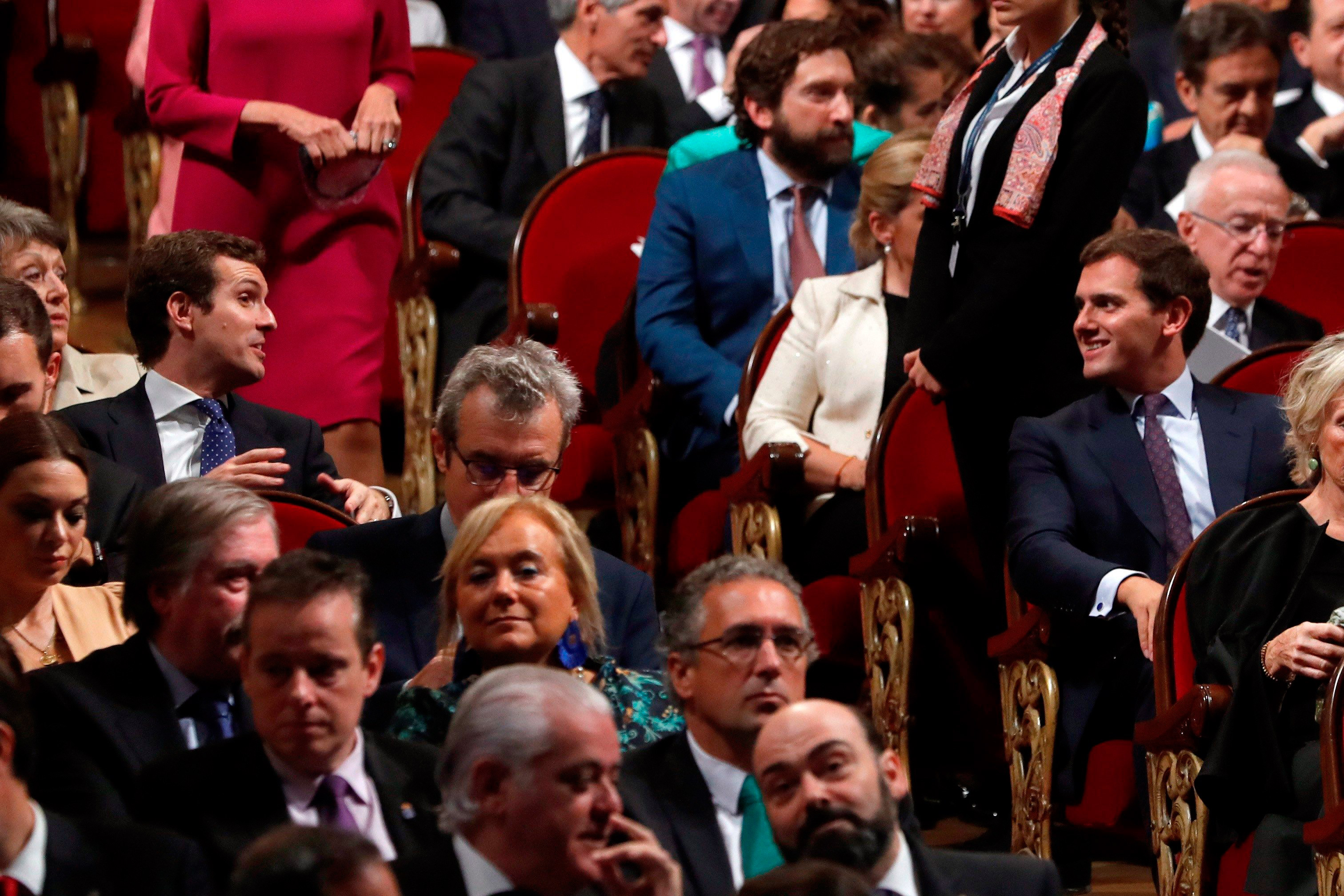 Pero he insistido en estos días, tanto en la radio como en El Mundo, en que la fuerza de la posición de Casado se basa también en la de Rivera. Si el líder de Ciudadanos, que habló tras Casado y Sánchez, hubiera cedido a la tentación centristoide y equidistante ("ni la derecha dura ni la izquierda radical") el PP se habría quedado solo en el Parlamento, si acaso con cierto apoyo exterior de Vox. Pero al enfrentarse Rivera de forma contundente a Sánchez, y responder éste llamándoles "mellizos", eran los dos partidos del centro y la derecha en el Parlamento, además del emergente de Derecha fuera de él, los que se perfilaban y eran percibidos como un frente unido de resistencia nacional contra el golpe de Barcelona y sus aliados en Madrid.