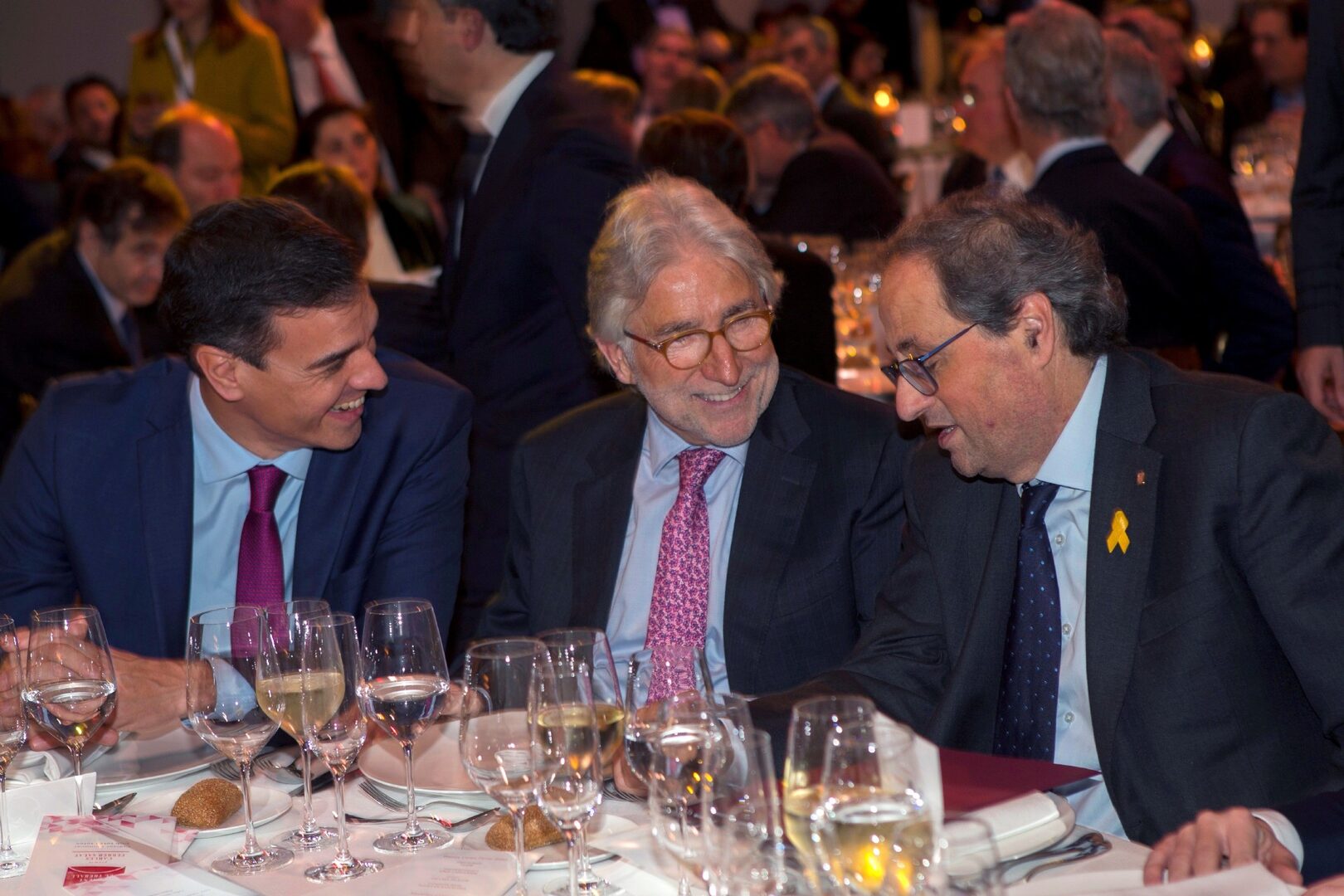 A las pocas horas de la infame nota, Calvo dijo en la radio que la "solución del conflicto" es una cosa que debe resolverse "entre catalanes", es decir, que los que no somos catalanes no pintamos ya nada en lo que se perfila como un plebiscito para liquidar nuestro Estado y nuestra Nación. Antes, genuflexo ante el catanazi Torra, que ahuecaba su voz de ratafía ante la flor marchita del empresariado favorable al golpe -adecuadamente presidido por un Sánchez Llibre, de la acreditada banda de Durán y Pujol-, el Presidente Felón se adentró en el entusiasmo alcohólico del mal bebedor y si no se morreó al modo de Breznev y Honecker o Iglesias y Domenech, con el que él mismo llamaba "fascista", sería porque a Torra no le apeteció. Pero proclamó la primacía absoluta del "diálogo" sobre la Ley, como si no se sintiera obligado por la Constitución que juró "guardar y hacer guardar".