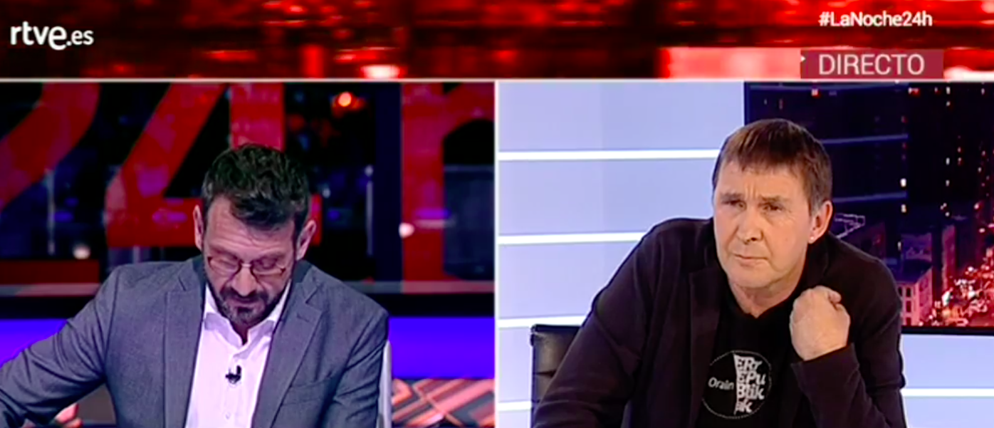 Otegi pasa ahora de TV3 a TVE, y hay fundamento para pensar en los motivos. Daniel Portero, de la asociación Dignidad y Justicia, dice que así se le agradece el apoyo en Navarra a un Gobierno de los socialistas. No hay duda de que este tipo de honores mediáticos se conceden por algo. Cuando Zapatero estaba en sus diálogos nada platónicos con la ETA, se recurrió al Times para sacar al asesino en serie De Juana Chaos, demacrado en una cama hospitalaria, diciendo que hacía un llamamiento por la paz, y le concedieron prisión domiciliaria. Ya sabemos, con más certeza que entonces, que la ETA puso como condición para seguir dialogando que se arreglara lo de De Juana. Hoy no hace falta tanto subterfugio, y se puede colocar el hacha en prime time en TVE sin que nadie se vista de negro, mucho menos por las víctimas de ETA.