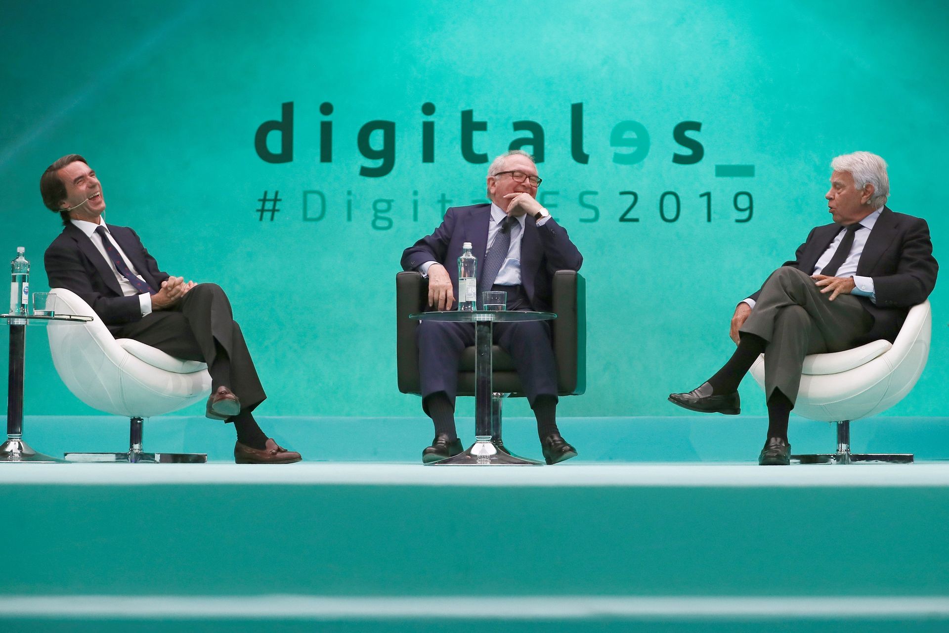 Cuando Felipe González y Aznar coinciden en público, hay noticia. En esta ocasión lo ha sido su asistencia a un foro tecnológico, aunque de lo que han hablado es de política. O mejor, de actualidad política, que no es lo mismo. No deja de ser un símbolo que el moderador del encuentro haya sido Eduardo Serra, exministro de sendos Gobiernos presididos por los dos. La imagen que se pretendía trasladar era la de que antaño había unos mínimos que estos adversarios políticos compartían gracias a la centralidad de la que los dos participaban. Símbolo de esa centralidad es el mismo Eduardo Serra, allí presente, que supuestamente basó en la mucha centralidad que atesora el no tener empacho en ser ministro de uno y luego de otro. Ahí estaba la prueba evidente de lo muy centrados que estaban Aznar y González. Hogaño, según ellos, las cosas han cambiado. Hay dos bloques mortalmente enfrentados, que cada vez se alejan más del bendito centro.