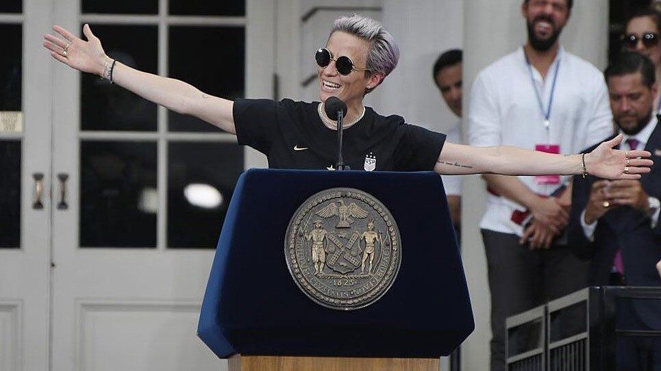 Recién, sin embargo, me interesé en el equipo de fútbol femenino norteamericano. Son magníficas, juegan con unas capacidades increíbles, lo dan todo. Pero. Hablan demasiado. Sobre todo su capitana, Megan Rapinoe. Además de que se negó a cantar el himno de su país, del país que representa, abandonó tras el triunfo de forma grosera la bandera norteamericana tirándola al suelo, y se puso a bembetear que no visitaría la Casa Blanca. También aireó su lesbianismo socialista, y selló a su regreso con un discurso político lamentable.