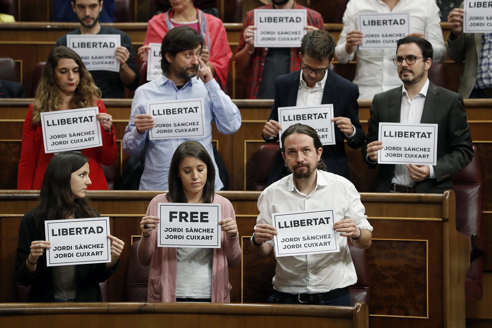 Eso, sin entrar en la singularidad de Podemos. Eso, dando por supuesto que Podemos es un partido a la izquierda del PSOE como cualquier otro. Cuando no lo es. No es, para nada, la vieja Izquierda Unida, de algún modo heredera del PCE y de sus posiciones en la Transición y sobre la Constitución, que contribuyó a elaborar. Podemos representa el corte del cordón umbilical que unió a los comunistas españoles al consenso constitucional. De hecho, su singularidad más visible es la íntima asociación con el separatismo catalán y la dinámica del golpe de octubre. Tan íntima, que lo tienen dentro. La exigencia podemita de incluir en el Gobierno a dos conspicuos separatistas de los comunes, como Asens y Pisarello, fue una clara provocación. El tándem que ha formado con Esquerra Republicana es señal inequívoca.