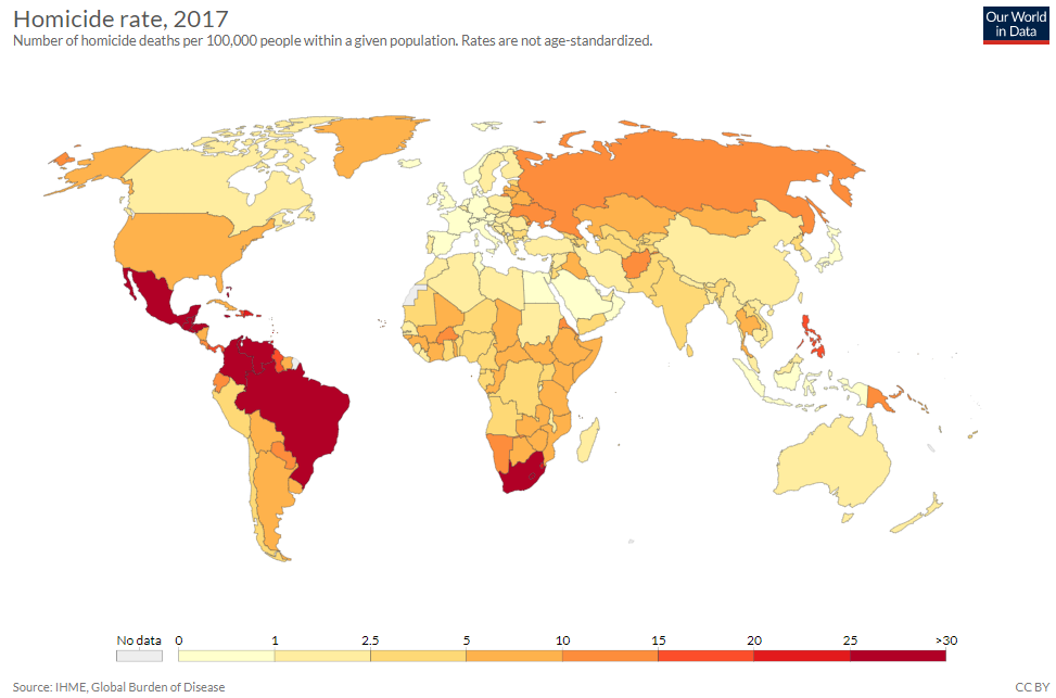 Además, España, con apenas 331 homicidios en 2017, equivalente a 0,71 casos por cada 100.000 habitantes, es, de lejos, uno de los países menos violentos del mundo, con una incidencia inferior a la de Francia, Italia, Alemania o Noruega, por poner tan sólo algunos ejemplos.