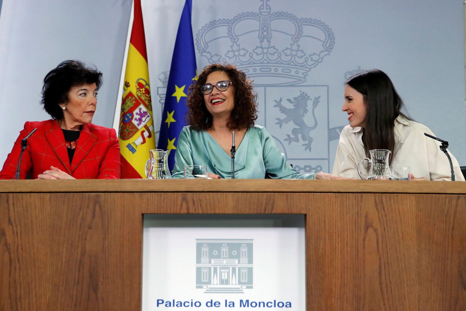 La portavoz del Gobierno y ministra de Hacienda, María Jesús Montero, acompañada por las ministras de Igualdad, Irene Montero, y de Educ | EFE