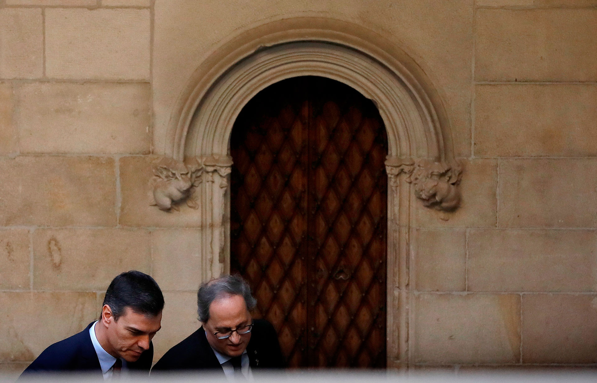 La visita de Pedro Sánchez a Cataluña tenía mucho de visita a un país extranjero. No estaba, que se sepa, la ministra de Exteriores porque hasta ahí podíamos llegar, pero el viaje tuvo mucho de la parafernalia de las relaciones diplomáticas: las banderas de uno y otro país, la revista a una compañía de honores de la policía autonómica, intercambio de presentes, la rueda de prensa y cosas así.