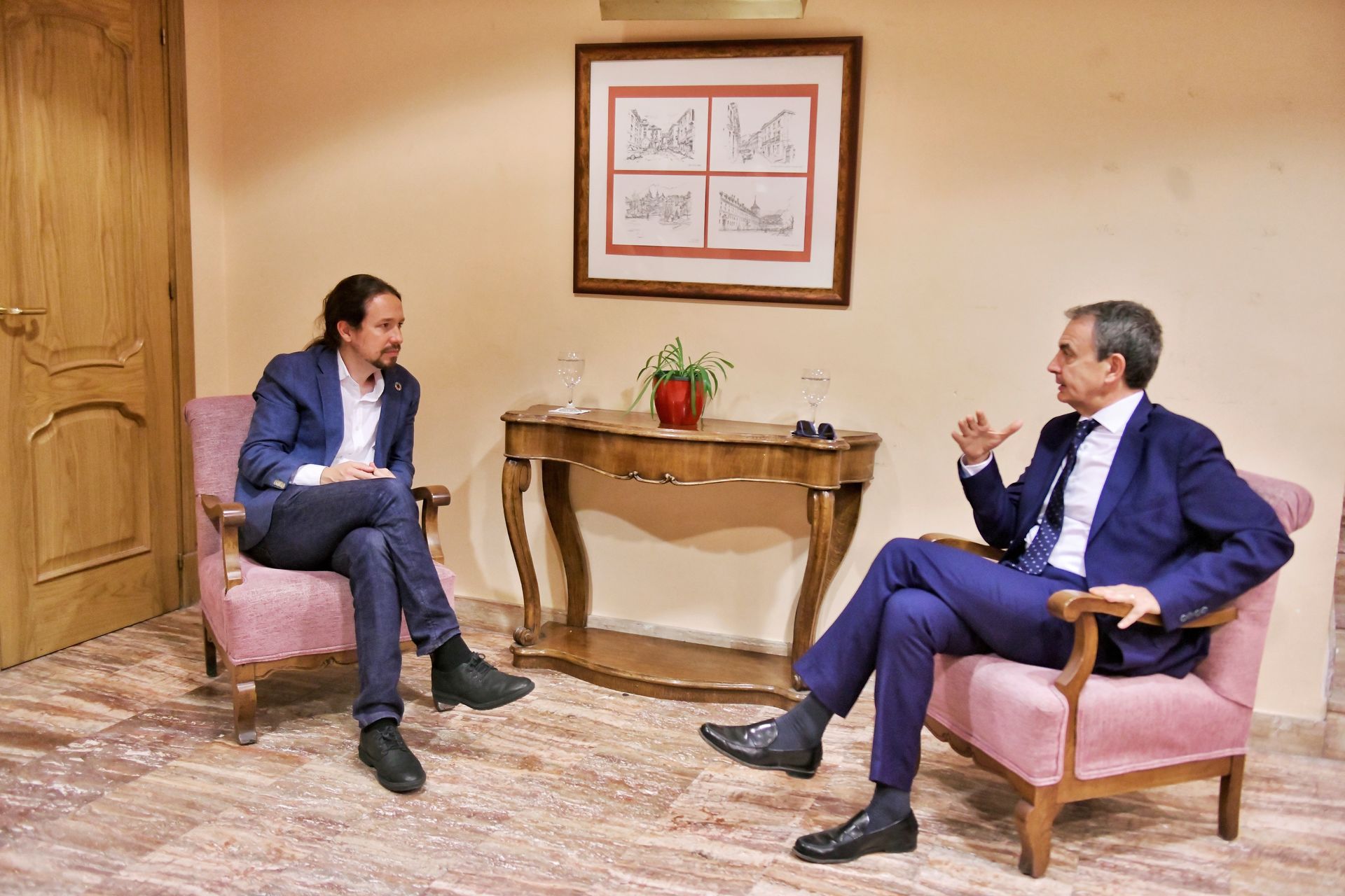 El expresidente del Gobierno, José Luis Rodríguez Zapatero, y el vicepresidente segundo y líder de Podemos, Pablo Iglesias. | EFE