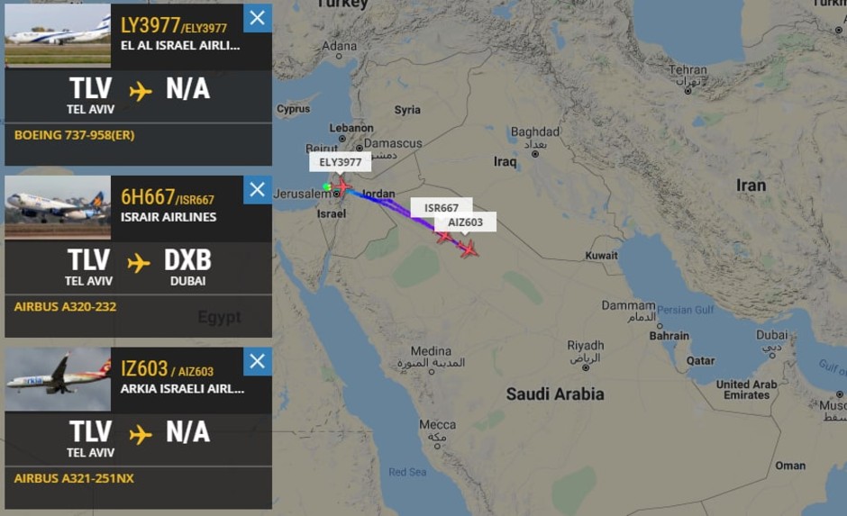 Amazing and unbelievable: three Israeli airlines: El Al, Arkia and Israir, operate this morning commercial direct-flights from Ben Gurion Airport to Dubai ????@ynetalerts pic.twitter.com/TAZhBOwmkL