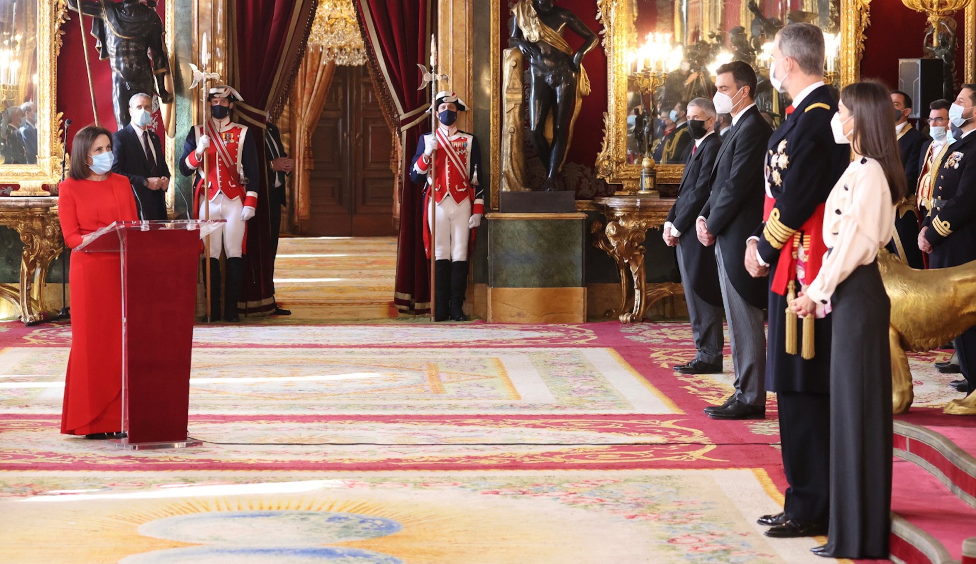 La ministra de Defensa, Margarita Robles, tuvo a bien deslucir la celebración de la Pascua Militar con un discurso en el que introdujo la agenda de la extrema izquierda. Las alusiones a los chats con proclamas disparatadas de militares retirados han sido una concesión a Podemos y a los medios republicanos sumamente inoportuna. El Rey no ha caído en la trampa y se ha abstenido de comentar esas anécdotas que el Gobierno trata de elevar a categoría para cercar aún más a la Corona.