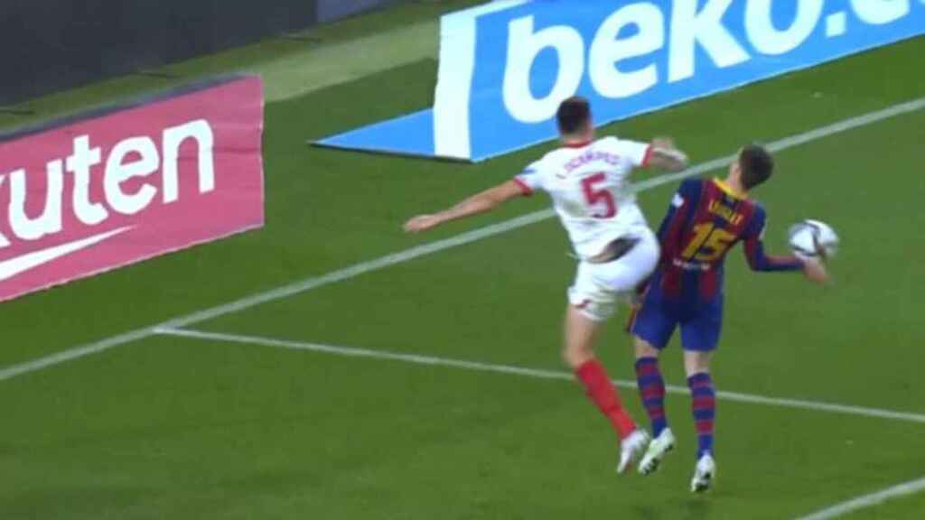 Otra razón que me hacía pensar que no era penalti de Militao era que golpea la pelota con el hombro antes de que le toque en el brazo. Ahora resulta que se ha eliminado la norma que evita que no sea penalti y ya no importa si te ha tocado antes en la cabeza, hombro, pierna o pecho. Y termino con esta zona del cuerpo porque, desde la perspectiva de un madridista y de, atención, un sevillista, es normal que te venga ahora a la cabeza un penalti que no se sañaló, la mano de Lenglet en Copa del Rey. ¿El argumento para defender la decisión del árbitro y el VAR? Que hay toque previo con el pecho. Los árbitros siempre tienen una salida porque tienen un criterio "fuerte y definido", pero también es voluble. Depende de las circunstancias, del partido, el mes o del estado de la luna.