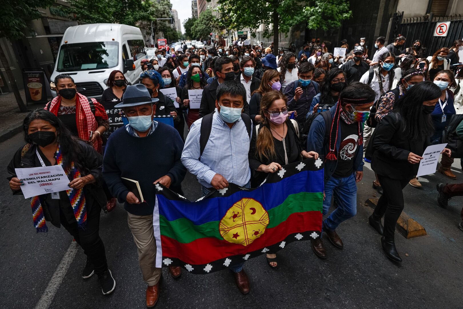 Un grupo de constituyentes e indigenistas protestan contra el Estado de Excepción declarado en varias provincias de las regiones del Biobío y la Araucanía, en Chile. | EFE