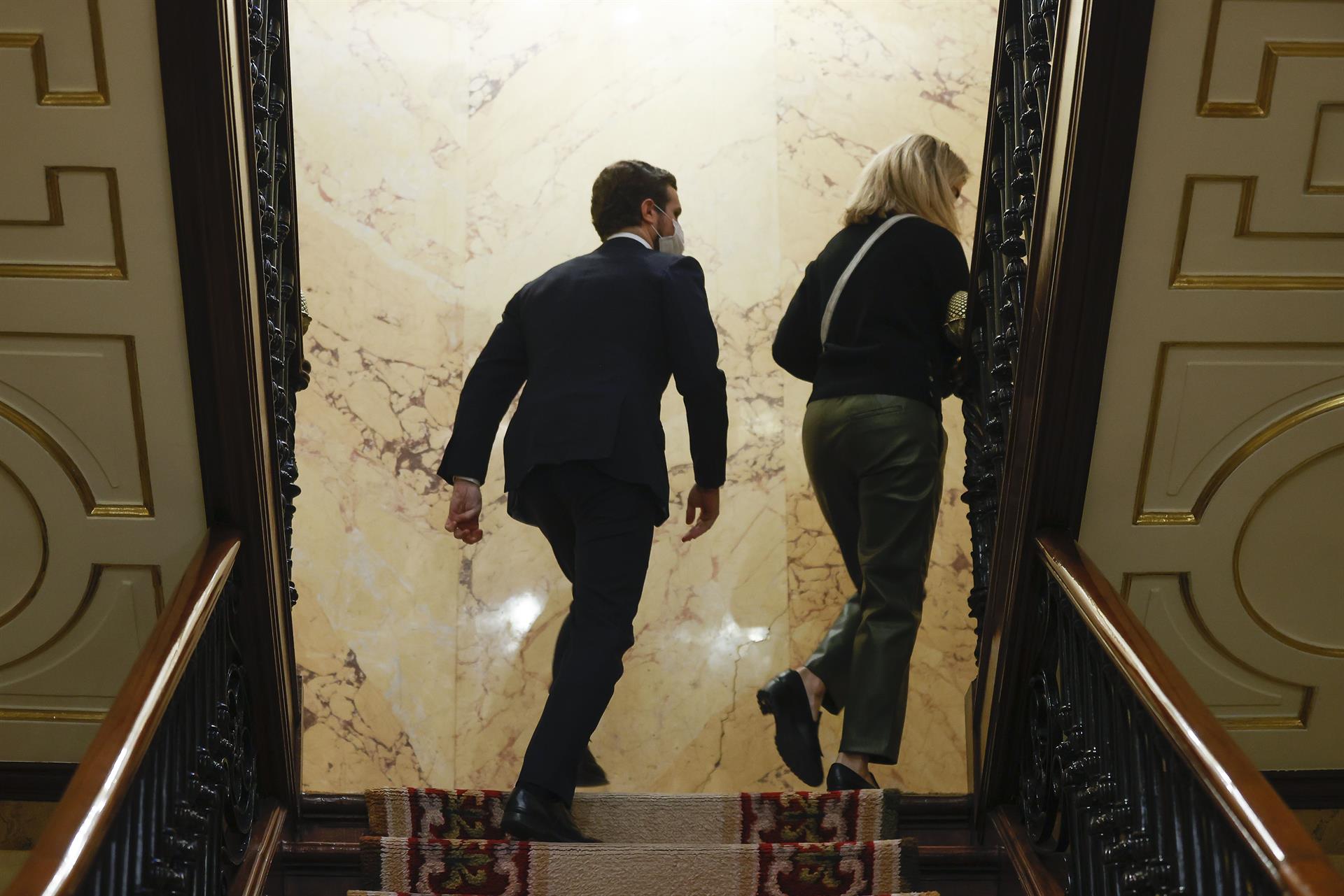 A eso de las nueve menos veinte, parecía que en el Congreso firmaba discos C. Tangana: la cola de periodistas asomaba por Cedaceros y, una vez dentro, más de uno se dirigió/nos dirigimos hacia el Palacio de las Cortes como si nos persiguiera Jack Torrance con un hacha. Cuando el –¿aún lo sigue siendo?– líder del PP entró en el hemiciclo, un diputado, más que aplaudir, dio dos palmadas y, viendo que nadie le acompañaba, cesó su amago de agasajo. Un murmullo tanatorial prologó la intervención de Casado, quien reivindicó la "concordia" y la "reconciliación" frente "al rencor y la ira" –ya lo podría haber practicado con Ayuso–, pidió a Sánchez ensanchar "el espacio de la centralidad" y deseó que "el Gobierno se ponga al servicio del interés general", "todo para servir a España y a la causa de la libertad, porque ese es el futuro que merecen nuestros hijos". La pregunta parlamentaria –"¿Cuánto más está dispuesto a ceder a sus socios independentistas para seguir en La Moncloa?"– se la ahorró.