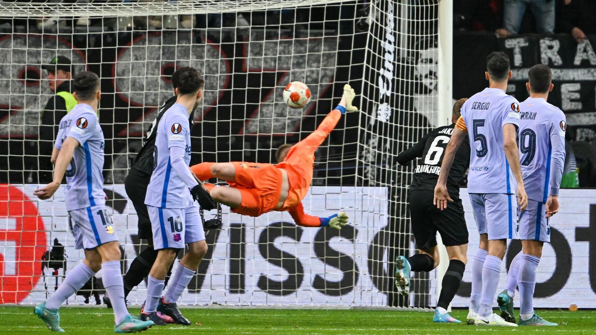 Solo Ferrán lanzó un tiro a puerta en la primera parte y fue casi gol. Trapp le paró la pelota en la mejor acción visitante. Fue un buen comienzo pero no fue continuado. El Eintracht comenzó a hacer transiciones veloces, lo peor que le pueden plantear a este Barcelona, el mayor arma para matarle. Fue mucho mejor equipo el alemán en la primera parte y pudo dejar la eliminatoria muy decantada. El milagro fue que no estuvo acertado y eso el Barcelona lo supo amortizar.