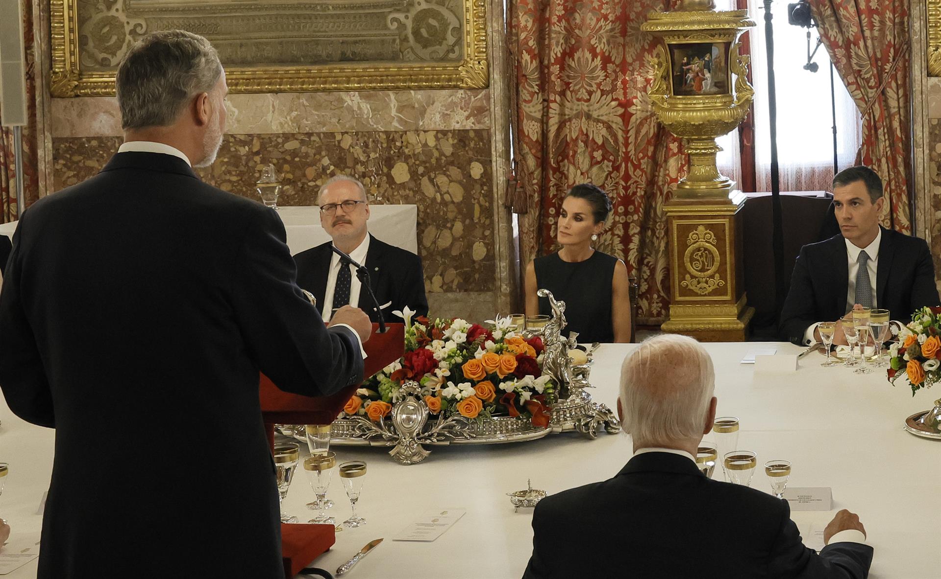La Corona, no sólo el Rey y la Reina, sino la institución que ostenta la representación legítima del Estado, ha sido la protagonista de la primera gran reunión de los jefes políticos de occidente tras la invasión de Ucrania. Felipe VI tenía ante sí dos retos, a cual más difícil: el primero era recibir a Biden y compañía con un alarde de seguridad, tras la vergüenza de Saint Denis, y de amigabilidad, el toque friendly. El segundo, y más difícil, era mantener a cierta distancia institucional, ni demasiado lejos ni demasiado encima, al presidente del Gobierno y su señora, dos patanes que acreditan cada vez que tienen ocasión que no saben comportarse en presencia de los reyes por la sencilla razón de que aspiran vehementemente a sustituirlos.