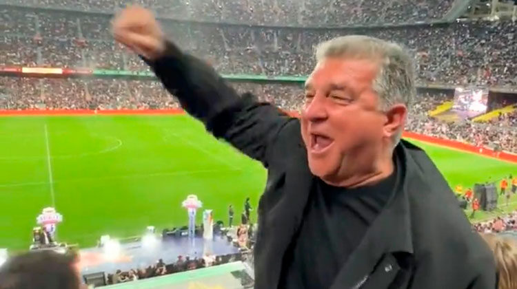 La noticia de fondo es el "Barça". La retransmisión en directo de la alocución de Laporta en la santa sede "blaugrana". El presidente del "més que un club" se ha presentado ante los fieles como el verdadero profeta de Pujol, tenedor de las Tablas de Moisés y líder del equipo elegido. Por fin Barcelona es la ciudad que toma su nombre del club azulgrana, el símbolo identitario absoluto de Cataluña, ni Generalidad, ni Consejo de Ciento ni Círculo Ecuestre. El "Barça". Dijo Laporta que a la iglesia culé más que ganar le gusta cómo se gana en plan "sujétame el cubata", que la Agencia Tributaria no ha demostrado que se haya alterado la competición al tener a sueldo durante 18 años al vicepresidente de los árbitros y, ojo al piojo, salta la sorpresa en Las Gaunas, que el Real Madrid es el equipo del régimen.