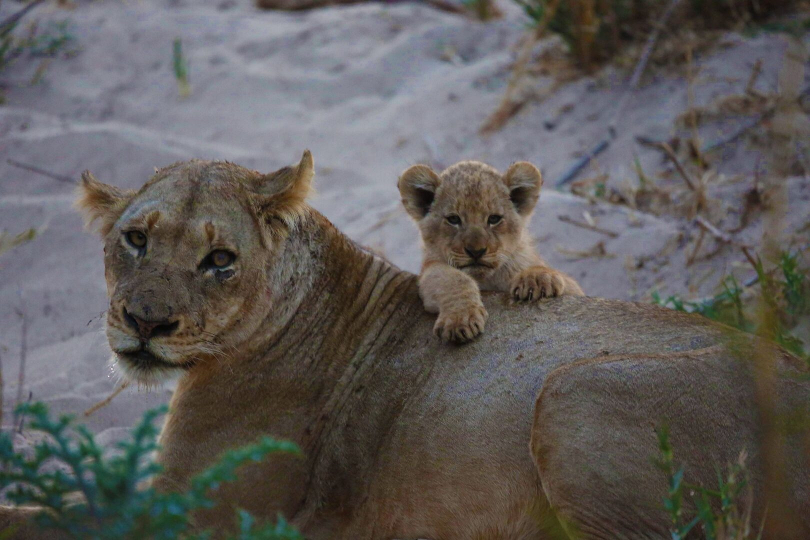 La recién parida trata de animarlo por todos los medios a su alcance y lo mira, lo empuja, lo lame, sólo tiene algunos minutos para hacerle entrar en acción, porque desde que han olfateado el parto, sigue todas las actividades una verdadera corte de carnívoros y carroñeros. Levantarse y dar los primeros pasos es cuestión de vida o muerte.