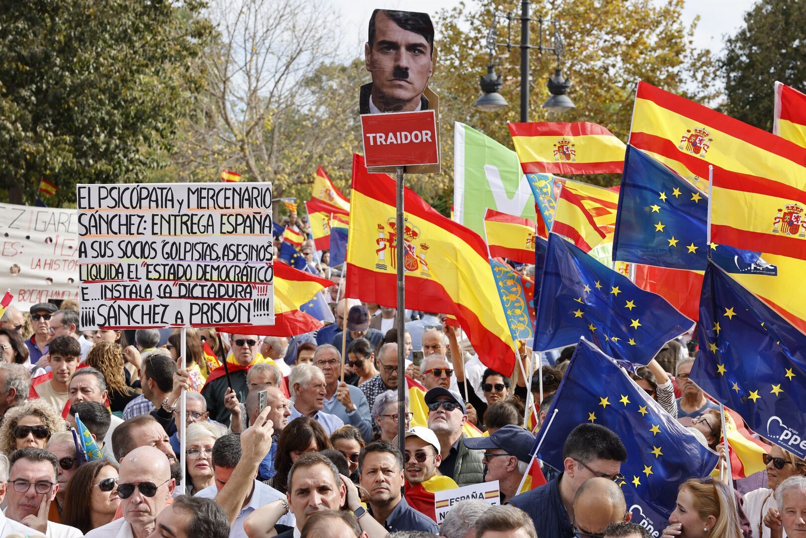 El 12 de noviembre la ciudadanía ganó una batalla por la democracia. El grito de libertad sonó en el mundo entero. Los efectos de las movilizaciones del domingo han sido inmediatos en todas las capitales europeas. No ha habido cadena de televisión que haya dejado de emitir el grito ciudadano contra el dictador Sánchez. Sin embargo, este traidor a su nación persistirá en la represión. Es su oficio. Llegó engañando, mintiendo y sigue, a todas horas, traicionando al Estado de derecho. Pero, antes de predecir los cien mecanismos represivos que utilizará contra los demócratas, debemos repasar el diagnóstico de algunos estudiosos de la situación política y, después, tendríamos que fijarnos en un par de pronósticos. Empecemos, pues, por lo obvio; por eso, precisamente, que ha llegado a todas las cancillerías del mundo entero: Sánchez ha dado un golpe de Estado en España. Este Sánchez, en efecto, forma parte ya de la historia de los espadones famosos de España.