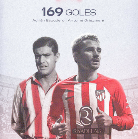 Anoche en el Metropolitano, algo se removió dentro de mí cuando el speaker del estadio celebraba el gol de Antoine Griezmann que significaba el 2-1 para el Atlético ante el Villarreal y mencionaba el récord igualado. Se activó un mecanismo de melancolía. Ese mecanismo que me hizo recordar ese "puff, le quedan muchísimos goles para llegar hasta Escudero y Luis Aragonés". Y vi de nuevo esa mítica foto de Escudero con las manos atrás y con una camiseta que siempre me hubiese gustado tener. Esta vez, esa foto se unía a la de Antoine Griezmann en los videomarcadores del Metropolitano y sí, sentí que estaba viendo historia en directo.