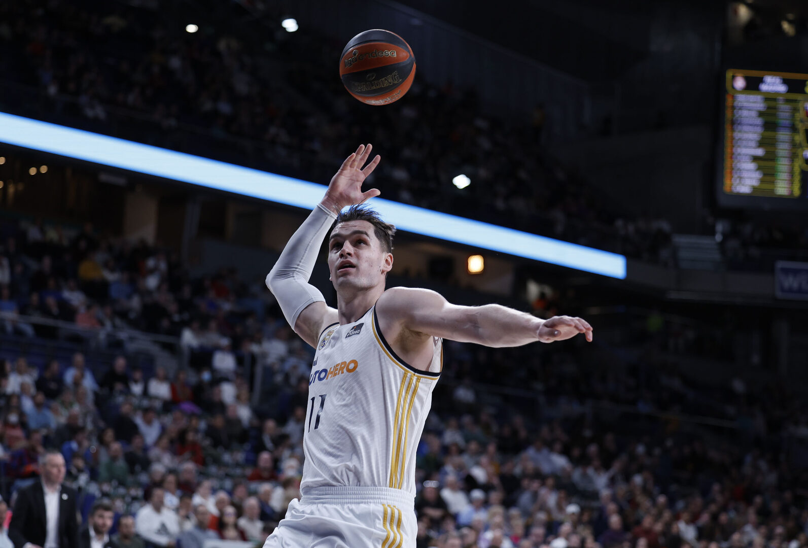 Da la impresión a veces de que el repertorio del de Dubrovnik fuera interminable. No solo por sus tiros imposibles a la media vuelta al límite de la posesión o sus exquisitos lanzamientos a tablero ―tan en desuso lamentablemente en el juego actual―, ambas acciones sufridas por el UCAM en ese segundo periodo en el que, a lomos de su demoniaco alero, el Real Madrid amenazó con romper un partido que, eso sí, tuvo que sudar hasta el final, dado el ímpetu murciano. El despliegue físico del alero blanco, más acorde al baloncesto estadounidense que al europeo, resulta dominante cuando Hezonja templa sus emociones y se centra solo en jugar. Pese a no ser un tipo demasiado expresivo en la alegría ―sí curiosamente en la frustración― no es difícil aseverar que su cabeza está en constante ebullición durante los partidos. Y que probablemente lo ha estado en cada instante a lo largo de la mayor parte de su carrera. Siempre en el ojo del huracán, eternamente buscando cumplir con unas expectativas altísimas desde que era un chaval.