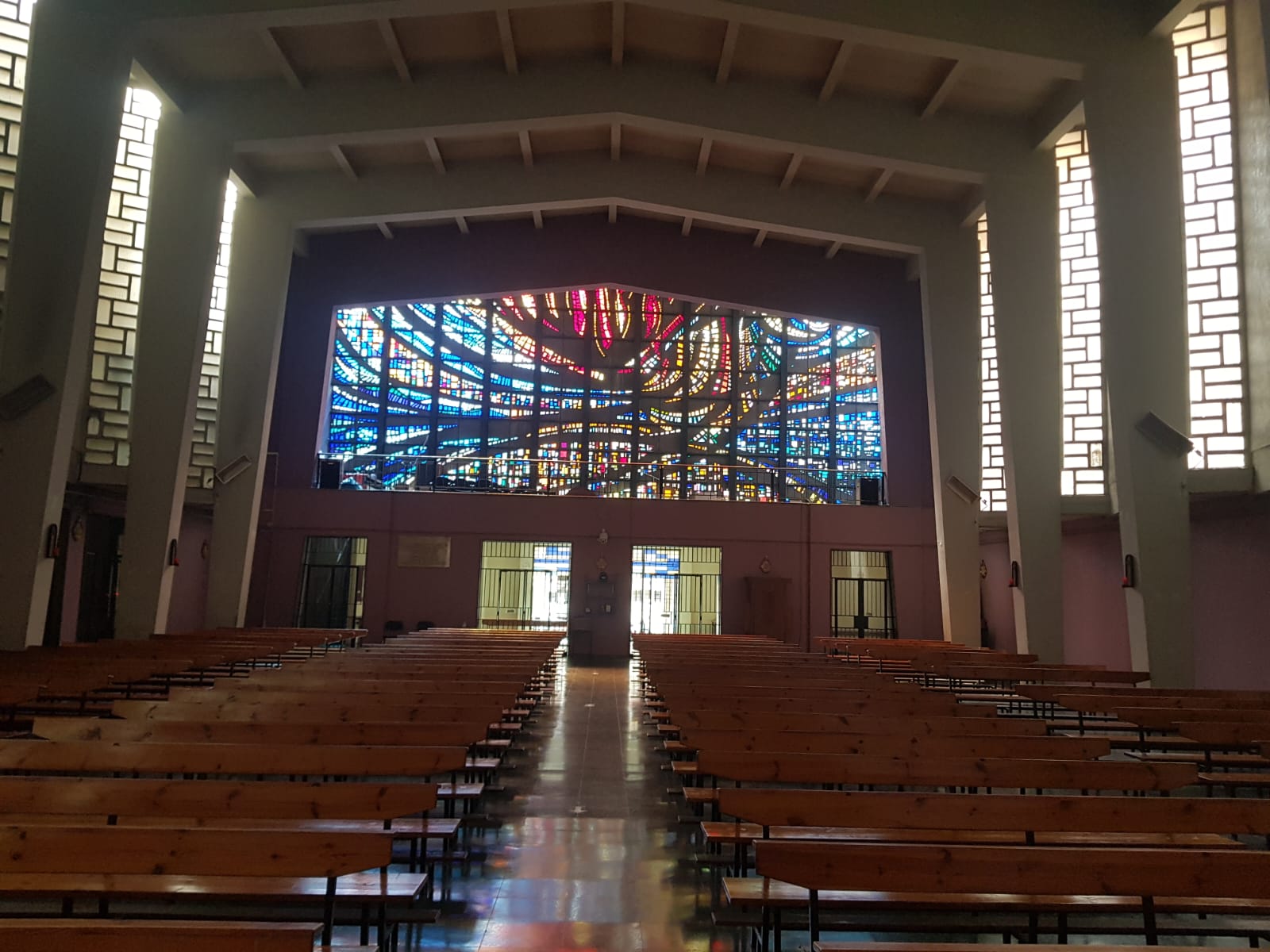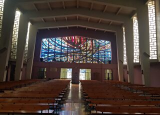 El anterior entrecomillado es un extracto de la información publicada en la página de Internet Germinans sobre el derribo de la mencionada parroquia barcelonesa. La parroquia es de una humildad extrema. Ocupa una pequeña manzana en el Bajo Guinardó. Está a un paso del Hospital de San Pablo, de Domènech i Montaner, y el cardenal Omella ha ordenado su destrucción para erigir sobre el solar una facultad de Medicina de la Iglesia. La iglesia es conocida por la vidriera. Más por fuera que por dentro. Por fuera resulta extremadamente singular. Por dentro es una impresionante representación de los años sesenta del siglo XX, doscientos metros cuadrados de luces y colores y de mucho más. El vitral data de 1967 y es obra del Taller Raventós. Poco más se sabe de la obra. Mucho menos que del más ínfimo resto de Atapuerca. Sin embargo, la iglesia con su vidriera es para miles de personas una especie de esbozo de la Capilla Sixtina de las artes decorativas. Y no solo decorativas. He ahí los siete dones, la Santísima Trinidad, el Código Morse de la Biblia y del misterio uno y trino representado en tercer lugar en forma de paloma. Paráclito.