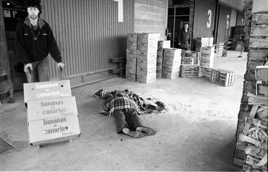Un fotógrafo del Diario de Navarra, Jorge Nagore, fue enviado por su periódico al lugar del atentado. Había pasado mucho tiempo y no creyó que quedara más que el lugar manchado con la sangre del muerto. Pero resultó que aún no había aparecido nadie y el muerto, tapado a medias con un chal, seguía ahí, mientras, y esto es lo que da a esa fotografía un valor histórico, la gente seguía con su trabajo como si no hubiera pasado nada. Un hombre joven lleva en su carretilla unos cajones de bananas de canarias, y mira a la cámara como sorprendido de que le hagan fotos, por algo tan normal como seguir con su tarea al lado del muerto y mirando a otro lado, posición moral que, asumida por la mayoría de la gente y tras expulsar a cientos de miles de navarros y vascos de su tierra, nos ha llevado a la triste situación actual.
