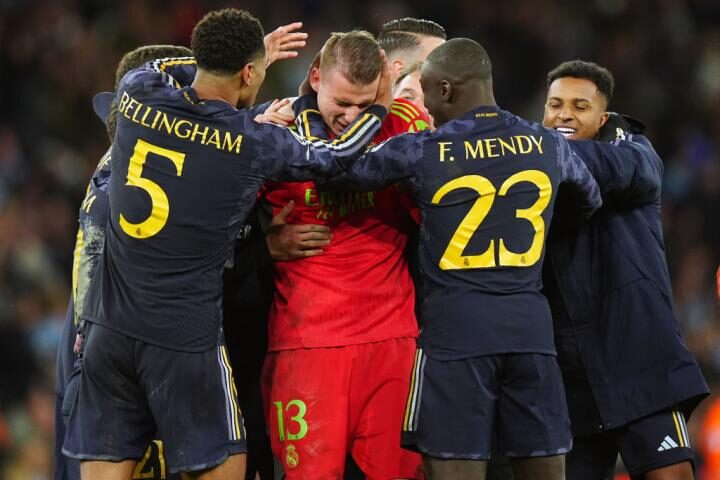 Tras esa mágica noche del Bernabéu hace dos años, Juanma Rodríguez acuñó en una máxima la intuición del respetable: "Dios es del Madrid". Pero el fútbol y la fe olvidan, y lo que más pesaba en la previa de la noche del miércoles era la paliza del año pasado. Sólo el recuerdo de ese Bernabéu hacía flotar en el ambiente un "¿y si sí…?" inconfesable. En la primera parte, guion esperado: presión asfixiante de los ingleses y Lunin ejerciendo de centrocampista. Un solitario balón largo rompió las defensas de Guardiola y, gracias a un control zidanesco de Bellingham, llegó el clásico zarpazo blanco.