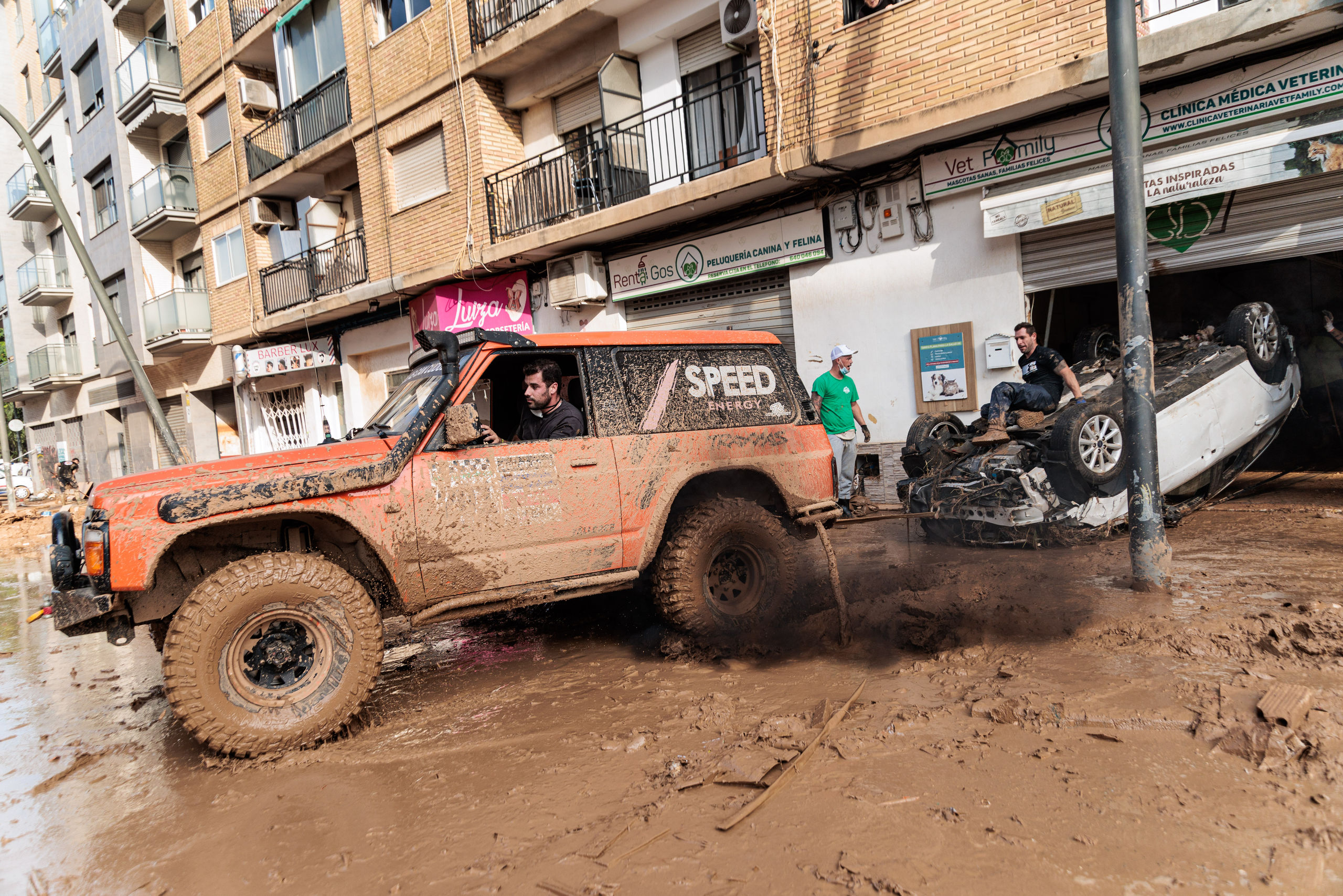 Me enseña un video grabado desde el furgón y la cosa es, como suele decirse en estos casos, dantesca. Coches apilados, uno de ello enganchado en un balcón de una primera planta, barro, lodo, destrucción y ruina, y más ruinas.… "No aparecen personas", me indica Julián con solemnidad ciudadana, o sea con mala leche, "sólo faltaba ir allí para retratar el rostro de las víctimas". Ay, amigo Julian, tú quizá no sepas explicar bien qué es la dignidad humana, pero la llevas grabada en tus genes. Eres persona. Le di las gracias por representarme en Valencia. Y me fundí con él en un fuerte abrazo. Gracias, Julián, sí, gracias a personas como tú y tus vecinos del barrio de Villaverde Alto, aún merece la pena seguir viviendo en este país. Por vosotros me siento orgulloso de ser español. Jamás te diferenciarás, distinguirás y elevarás sin respeto alguno, como hace el cobarde de Sánchez, sobre todo lo que tenemos de común los seres humanos, la humanidad, la verdadera humanidad. Eres un ejemplar ciudadano. Nunca rehusarás a nadie la dignidad humana. Estás en el lado contrario de la casta política española.