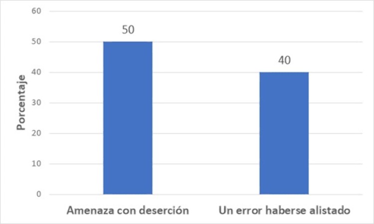 Moral de combate. La Ley Instrucción y Servicio Selectivo de 1940 exigía solo un año de servicio, pero en 1941 la decisión de aumentar el plazo derivó en una grave crisis de moral en las tropas. El 50% de los soldados de la 27ª División amenazó con desertar y otro 40% se arrepentían de estar en el ejército (figura 4).
