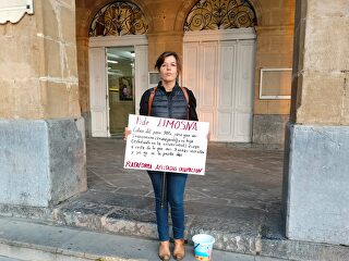 Otra madre en paro a la que no preguntan las empoderadas de izquierdas: Amaya, con tres hijas de 16, 6 y 4 años. Su caso lo resume ella misma en una pancarta de protesta: "Cobro del paro 907 euros para que mi inquiokupa (trabajando) y su hija (estudiante de universidad) vivan a costa de lo que mis tres niñas necesitan y yo no les puedo dar".