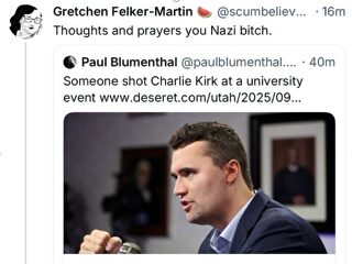 Han asesinado a Charlie Kirk, un tipo brillante que debatía a pecho descubierto contra cualquiera que se atreviera a desafiar tabúes, dogmas y demás morralla políticamente consensuada que pasa hoy por "el lado correcto de la historia". Lo han asesinado brutalmente en una universidad mientras debatía, seguramente porque es uno de los referentes de la revolución cultural que ha llevado a Trump a la Casa Blanca. Ahora, los izquierdistas habituales celebran su asesinato en las redes sociales. Da igual que estuvieras o no de acuerdo con la perspectiva conservadora de Kirk —que yo no comparto, desde su postura sobre el aborto hasta el control de armas—; si no lamentas su asesinato, eres simplemente un cómplice de sus asesinos. Pero si aprecias el debate, la discusión civilizada, el humanismo crítico y la filosofía como cuestionamiento de los poderes fácticos, desearás conmigo que descanse en paz.