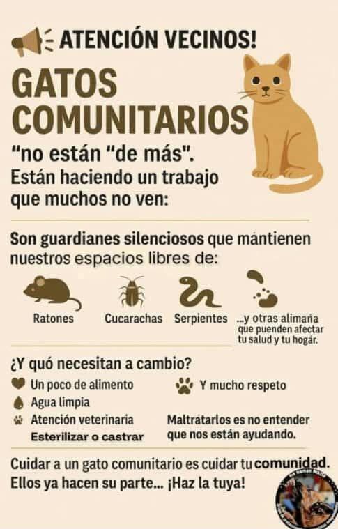 Hay que actuar antes de que la fauna, especialmente la ornitológica, a la que no se hace referencia en los perversos carteles sobre "alimañas", resulte dañada de manera irreversible, y de que comiencen las previsibles epidemias gatunas que acaben con las colonias felinas, víctimas de la ignorancia y la codicia de sus gestores y de la buena fe de sus colaboradores que las alimentan.