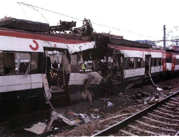 "He viajado en el tren de Santa Eugenia". "Sí, en su coche 4, el 190M, en uno de los que fueron desguazados los días 13 y 14 de marzo de 2004. He visto el lugar de la bomba, he imaginado la enorme tragedia, las escenas dantescas. y he pensado sobre todo en las víctimas".