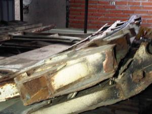 Una vez puesto en circulación el tren reparado, la chatarra extraída de la zona del foco de explosión quedó almacenada durante incontables meses en el hangar donde la reparación se había efectuado. Y allí estaba cuando se inició el juicio del 11-M, a primeros de 2007