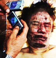 Los espectadores de la televisión, y las propias televisiones, no estamos hoy por encima de esos sociópatas adolescentes que filman los tormentos a que someten a sus vecinos o compañeros de colegio y cuelgan el video en internet. Ha habido verdadero placer en la exhibición, sin que ello contribuyera ni por un segundo a informar más. Se ha mostrado incluso al que se supone uno de los asesinos, en plena celebración, sin un solo comentario crítico ni un solo dato sobre el personaje ni sobre quien lo dirige. Me parece espantoso. Ésos no son mis semejantes. Tal vez sean los semejantes de Gadafi, pero ni así tenían el derecho de aniquilarlo de ese modo. Era un malvado, pero un hombre malvado.