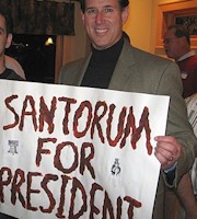 Santorum ganó entre los partidarios del Tea Party en Iowa. En un primer momento no se le prestó la debida atención; ahora las cosas serán distintas. No es ningún fanático del Gobierno Limitado; de hecho, fue partidario del conservadurismo compasivo de George W. Bush, que de hecho hizo las paces con el Gran Gobierno. Así, defiende leyes como la No Child Left Behind ("Que ningún niño se quede atrás") y la prescripción de recetas a cuenta de Medicare. El suyo es un ideario perfectamente defendible, pero ya va siendo hora, precisamente, de que lo defienda.