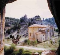 La ermita se hallaba en un estrechamiento de la garganta, en un punto donde se desprendía del paredón izquierdo una especie de lienzo de muralla natural, con una oquedad en el centro. El pequeño edificio, románico-gótico, ofrece una estampa extraordinariamente sugestiva, misteriosa, en un paraje que no lo es menos. Pero ¿qué es lo que sugiere?