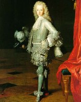 Le buscaron una esposa en el mercado de princesas europeas. El tráfico de sangre real nunca estuvo tan boyante como en aquellos tiempos que precedieron a la Revolución Francesa, que por algo estalló. La Farnesio arregló un matrimonio a tres bandas con el Duque de Orleans, que por entonces era el regente de Francia. La hija de la reina se casaría con el delfín Luis, el futuro y licencioso Luis XV; su hijo, el infante don Carlos, con Mademoiselle de Beaujolais, y, por último, el Príncipe de Asturias con el descarte, otra mademoiselle, esta vez la de Montpensier, de nombre Luisa Isabel.