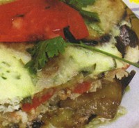 Enredando un día con estas cosas, y pensando en dar a las berenjenas, de alguna manera, una textura diferente, crujiente, atractiva, evitando al mismo tiempo que se manifestase su propensión a empaparse de aceite cuando se las fríe, nos pusimos a ello: un pastel de berenjenas, emparentado con todo lo anterior pero a nuestro estilo, cubierto de una dorada y crujiente capa de pasta.