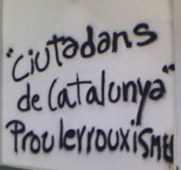 Pues bien, el jueves, en la Universidad Autónoma de Barcelona, se volvió a recurrir al dichoso eslogan, pero como los conferenciantes están a años luz de tales actitudes, fueron los propios independentistas quienes pintaron y portaron pancartas con ese eslogan, para atribuírselo a los no nacionalistas. Con todo el descaro del mundo. No hay siquiera engaño o confusión. Escenifican ellos mismos la atmósfera fascistoide que pretenden denunciar para poder seguir sintiéndose víctimas. Aunque sea de cartón piedra. Necesitan sangre fascista frente a sí para calmar su mala conciencia. Aunque como el mecanismo da réditos electorales, cambiaron a Pujol por Carod Rovira. Aquí el que no corre, vuela.