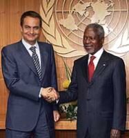 Zapatero ha reiterado en la ONU sus pretensiones constructivistas, intervencionistas y socializantes. Rodeado de dictadores, déspotas y tiranos, ha recordado que el fin último de todo Estado es expandirse sin límite. La redistribución planetaria es el objetivo prioritario; las subidas de impuestos, el medio adecuado; la construcción de una Nueva Jerusalén, el resultado final.