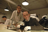 La película nos muestra a unos delincuentes con capacidad de tener ideales, e incluso de principios morales, interesante paradoja que está en el centro del conflicto de los personajes: ¿qué debo hacer si ayudarme a mí mismo y ayudar a los míos son opciones excluyentes? Cada personaje se pondrá frente a esta cuestión de forma diferente, y la mayoría harán un camino de progresiva humanización. Pensemos por ejemplo en un personaje que no es el protagonista, Adolf Burger –interpretado por August Diehl–, que, por cierto, es el autor del libro The devil's workshop, en el que se basa el guión. Se trata de un personaje al que no le importa sacrificarse por una causa justa. También entre los nazis vamos a encontrar con el oficial Friedrich Herzog, de moral ambivalente, y que nos va a recordar al teniente Gebhardt de El noveno día, que curiosamente representaba el mismo August Diehl. Herzog está encarnado por Devid Striesow, que obtuvo por este papel el premio de la academia alemana al mejor actor secundario. Por su parte, el Festival de Valladolid premió a Karl Markovics, protagonista del film en el papel de Salomon Sorowitsch, como mejor actor.
