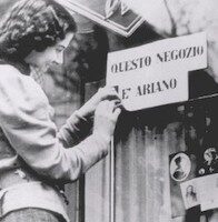 Sin embargo, si nos fijamos en el cartel del escaparate, la cosa cambia. Al leer ese cartel, en apariencia inofensivo, nos estremecemos: "Este negocio es ario", pone en italiano. Y comprendemos que esa foto refleja la mayor tragedia del siglo XX.