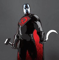 Solo nos falta el terrorista anarquista. Es decir, Batman. Como en el caso del original, sus padres también fueron asesinados; pero en su caso no fue al azar, víctimas del vulgar asalto de un muerto de hambre, sino que los masacraron por ser unos disidentes al sistema comunista: los pillaron con las manos en la masa mientras imprimían unos pasquines anti...Superman.