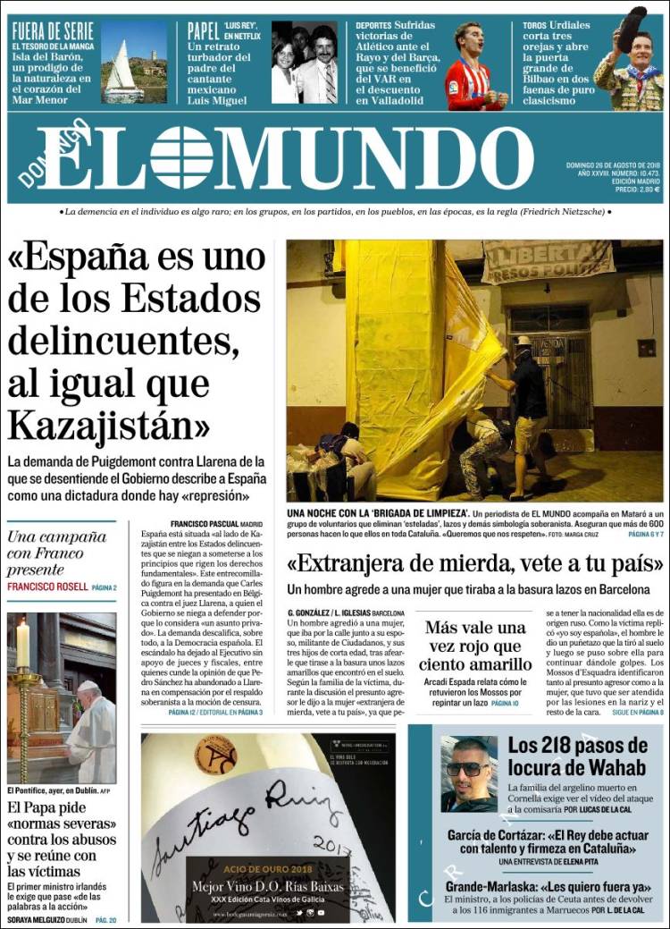 Aparece en portada en lugar destacado: "Los mossos se niegan a detener al independentista que agredió a la mujer".