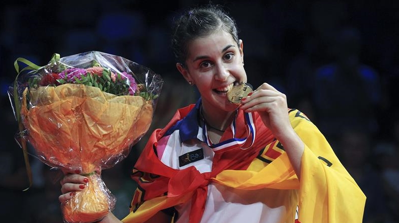 Carolina Marín (Huelva, 1993) es una jugadora española de bádminton que se ha proclamado campeona de Europa y del Mundo en 2014 en la modalidad de femenino individual. Es la primera jugadora española que logra proclamarse campeona del Mundo, hito que consiguió tras ganar a la china Li Xuerui en el campeonato celebrado en Dinamarca. Anteriormente partició en los Juegos Olímpicos de Londres 2012, donde fue eliminada en la fase de grupos. En 2011 obtuvo la medalla de oro en el Campeonato Europeo Juvenil celebrado en Finlandia.